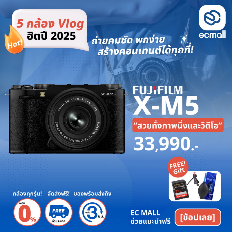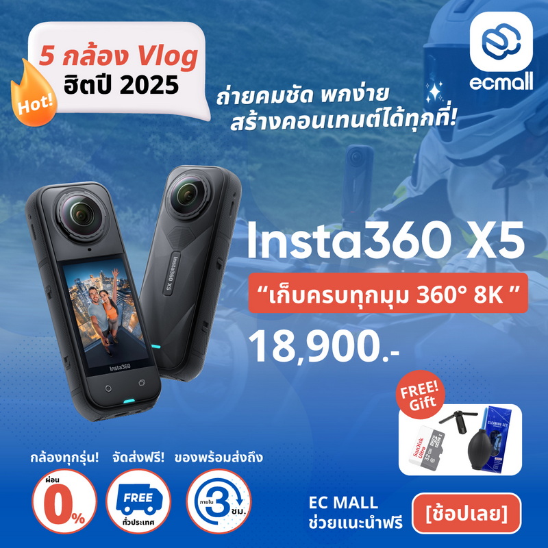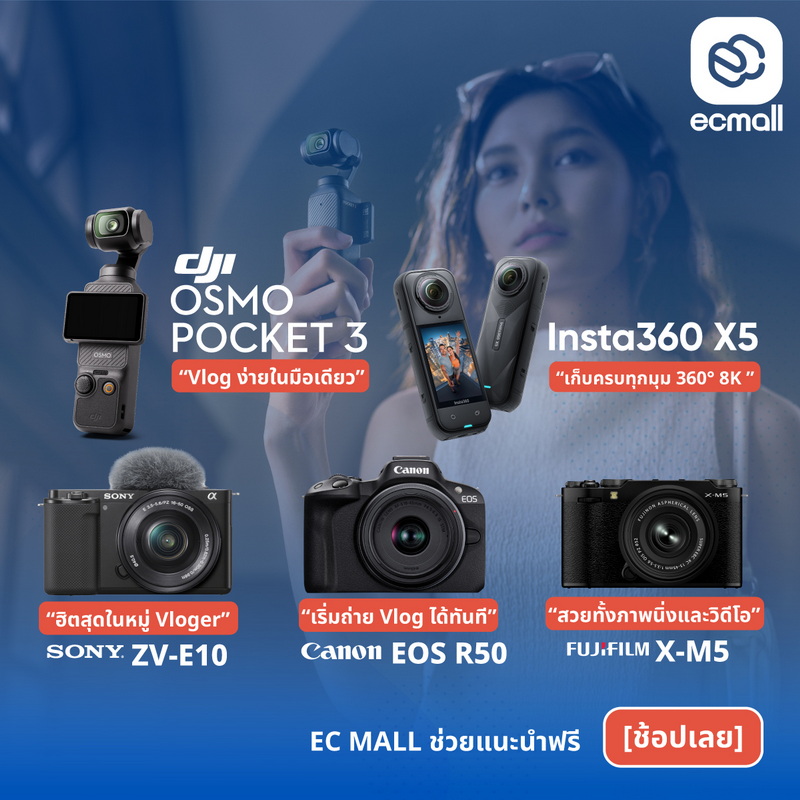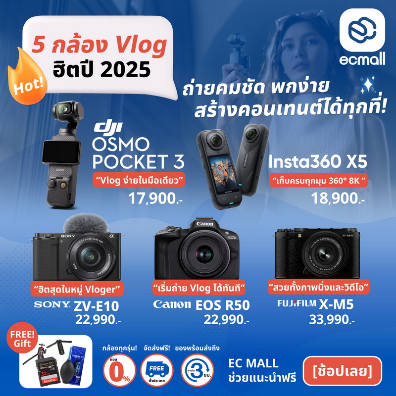 5 กล้อง Vlog ยอดนิยม ปี 2025 | ถ่ายคมชัด พกง่าย สร้างคอนเทนต์ได้ทุกที่ Canon | Sony | Fujifilm | DJI | Insta360 ของแท้ รับประกันศูนย์ไทย | ส่งด่วนใน 3 ชั่วโมง