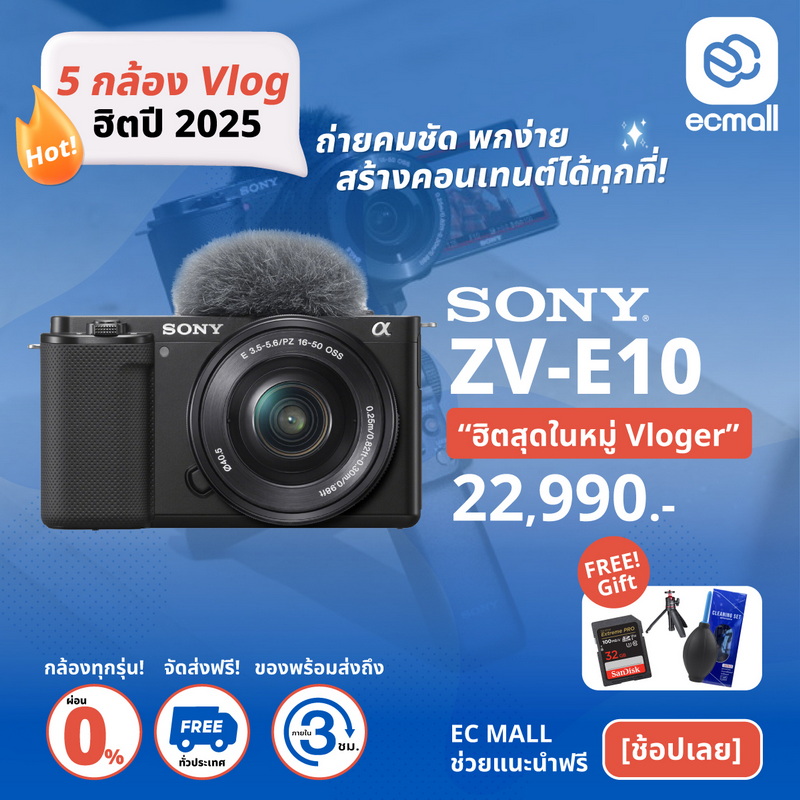 ถ่าย Vlog ได้สวยชัดทั้งภาพนิ่งและวิดีโอ เสียงดีจากไมค์ในตัว เปลี่ยนเลนส์ได้ ใช้งานร่วมกับเลนส์ Sony ได้หลากหลาย