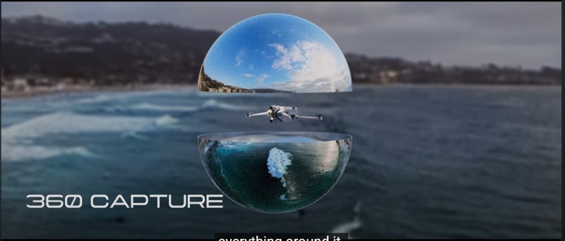 ด้วยเลนส์คู่ที่ติดตั้งด้านบนและด้านล่างตัวเครื่อง ร่วมกับอัลกอริทึมเย็บภาพของ Insta360 ทำให้ตัวโดรนถูกลบออกจากเฟรมอย่างแนบเนียน