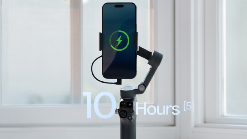 แบตเตอรี่ความจุ 3,350mAh สามารถใช้งานต่อเนื่องได้สูงสุด 10 ชั่วโมง และพอร์ต USB-C สามารถใช้เป็นเอาต์พุตเพื่อ ชาร์จสมาร์ทโฟน ได้ด้วย อย่างไรก็ตาม ควรทราบว่าหากเปิดใช้งานฟีเจอร์ Intelligent Tracking เวลาใช้งานจะลดลงเหลือประมาณ 5 ชั่วโมง และหากเปิด Fill Light ด้วยความสว่างสูงสุด เวลาใช้งานจะลดลงเหลือ 4 ชั่วโมง โดยมีเวลาชาร์จกลับจนเต็มประมาณ 2.5 ชั่วโมง