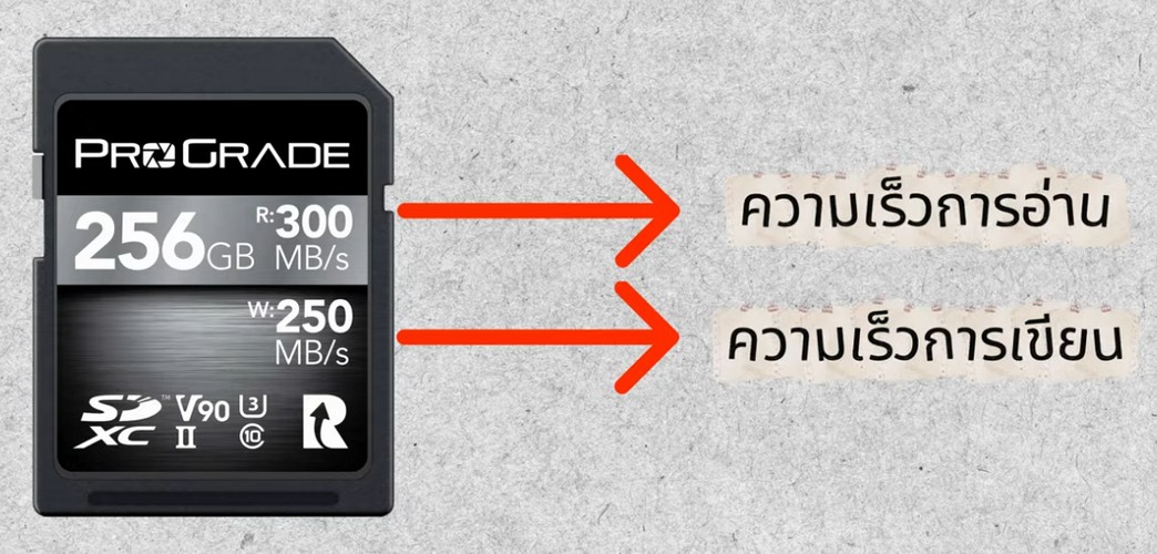 ตัวเลขที่โชว์ตัวใหญ่ที่สุดบนหน้าการ์ด (เช่น 170MB/s) ส่วนใหญ่คือ "ความเร็วในการอ่าน" (Read Speed) ซึ่งช่วยให้คุณโอนไฟล์ลงคอมพิวเตอร์ได้เร็วขึ้น แต่ "ความเร็วในการเขียน" (Write Speed) ต่างหากที่เป็นตัวกำหนดว่ากล้องจะบันทึกภาพรัวหรือวิดีโอได้ลื่นไหลแค่ไหน