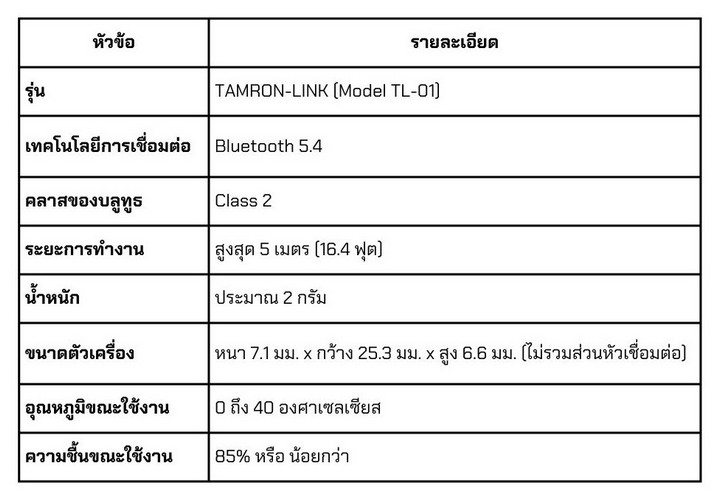 เมื่อวันที่ 19 กุมภาพันธ์ 2026 ที่ผ่านมา TAMRON ได้สร้างเซอร์ไพรส์ใหญ่ให้กับวงการช่างภาพด้วยการเปิดตัว TAMRON-LINK (Model TL-01) อุปกรณ์เสริมบลูทูธขนาดจิ๋วที่จะเปลี่ยนให้การปรับแต่งเลนส์ที่เคยยุ่งยากกลายเป็นเรื่องง่ายผ่านระบบไร้สาย พร้อมข่าวดีที่ชาว iOS รอคอยมาแสนนาน