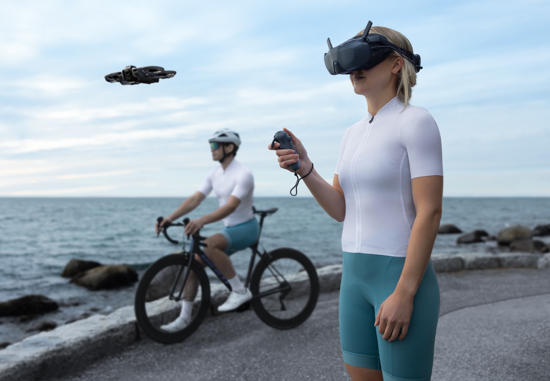 2. Goggles 3/N3 + RC Motion 3 - หรือใช้ Goggles 3/N3 คู่กับ RC Motion 3 เพื่อการบินแบบ immersive พร้อมภาพ 360° มุมมองของคุณเคลื่อนไหวตามการหันหัวของคุณอย่างเป็นธรรมชาติ ทำให้คุณรู้สึกเหมือนกำลังลอยอยู่ท่ามกลางเมฆ มองเห็นโลกจากมุมสูง