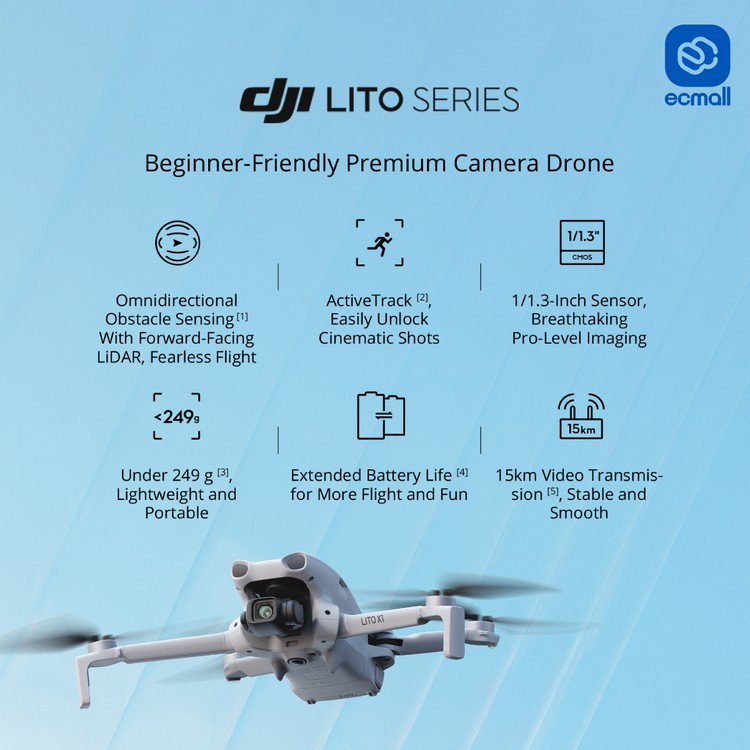 DJI Lito Series คือหนึ่งในโดรนมือใหม่ที่ดีที่สุดที่ DJI เคยทำมาครับ ไม่ว่าจะเลือก Lito 1 หรือ Lito X1 ทั้งคู่ให้ประสบการณ์บินที่ปลอดภัย ใช้งานง่าย และได้ภาพสวยกว่าโดรนในราคาเดียวกันอย่างเห็นได้ชัด ถ้าต้องการคำแนะนำเพิ่มเติมว่าควรเลือกรุ่นไหนและชุดไหนเหมาะกับการใช้งานของคุณที่สุด แวะปรึกษาทีมผู้เชี่ยวชาญที่ EC-MALL ได้เลยครับ