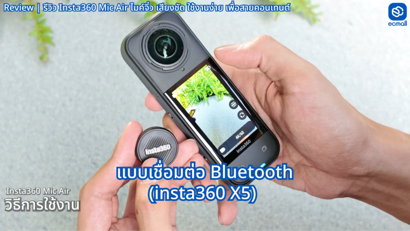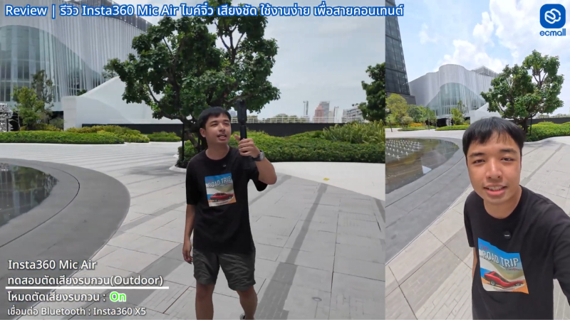 เรื่องการใช้งานจริง Mic Air ถือว่าใช้ง่ายมาก เปิดเครื่องด้วยการกดปุ่มค้าง และถ้าจะเชื่อมต่อบลูทูธกับกล้อง Insta360 ก็แค่กดสองครั้ง จากนั้นกล้องจะเจอไมค์และจับคู่ให้เลย พอเชื่อมครั้งแรกเสร็จ ครั้งต่อไปแค่เปิดกล้องกับไมค์ มันจะต่ออัตโนมัติทันที ไม่ต้องมานั่ง Pair ซ้ำให้เสียเวลา ปุ่มเดียวบนตัวไมค์ยังทำได้หลายอย่าง ไม่ว่าจะสั่งถ่ายรูป กดเริ่ม/หยุดวิดีโอ เปิด/ปิดโหมดตัดเสียงรบกวน หรือจะ Mute เสียงก็ทำได้หมด
