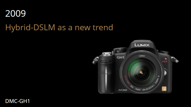 เริ่มจาก GH1 ในปี 2009 ซึ่งเป็นกล้อง mirrorless ตัวแรกที่บันทึกวิดีโอแบบ AVCHD พร้อมการควบคุมเสียง, manual exposure และ autofocus ในโหมดวิดีโอ โดยยังใช้ระบบ MFT ทำให้วิดีโอที่ได้มีความชัดและสามารถเล่นกับระยะเลนส์ต่างๆ ได้ง่าย