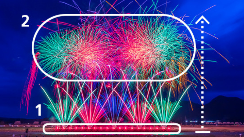 เพื่อให้ได้ภาพพลุที่ตรงกับจินตนาการของคุณ สิ่งสำคัญคือการสังเกตเส้นแสงที่พุ่งขึ้นและแตกตัวบนท้องฟ้า เส้นเหล่านี้จะบอกตำแหน่ง ขนาด และทิศทางของพลุ ซึ่งเป็นตัวกำหนดว่าพลุจะวางตัวอย่างไรในองค์ประกอบภาพ การอ่านทิศทางเส้นแสงตั้งแต่เริ่มต้นช่วยให้คุณตัดสินใจได้ว่าจะให้พลุอยู่จุดใดในเฟรม เพื่อสร้างสมดุลหรือความโดดเด่นตามที่ต้องการ ไม่ว่าจะให้ล้อมรอบด้วยฉากหลัง หรือวางคู่กับ Landmark สำคัญในภาพ