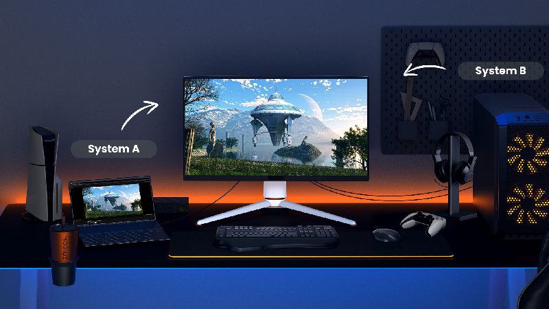 สตรีมเมอร์ที่เล่นเกมบนคอมพิวเตอร์ส่วนใหญ่จะใช้จอภาพ 2 จอ โดยจอหนึ่งไว้สำหรับเล่นเกม และอีกจอหนึ่งไว้สำหรับควบคุมการสตรีม จอภาพที่มีเทคโนโลยี KVM (Keyboard, Video, Mouse) จะช่วยให้สามารถควบคุมคอมพิวเตอร์หลายเครื่องด้วยคีย์บอร์ด เมาส์ และจอภาพชุดเดียว ทำให้สตรีมเมอร์สามารถสลับการใช้งานระหว่างเครื่องเล่นเกมและคอมพิวเตอร์สตรีมมิงได้อย่างสะดวกสบาย ลดความยุ่งเหยิงของสายเคเบิล