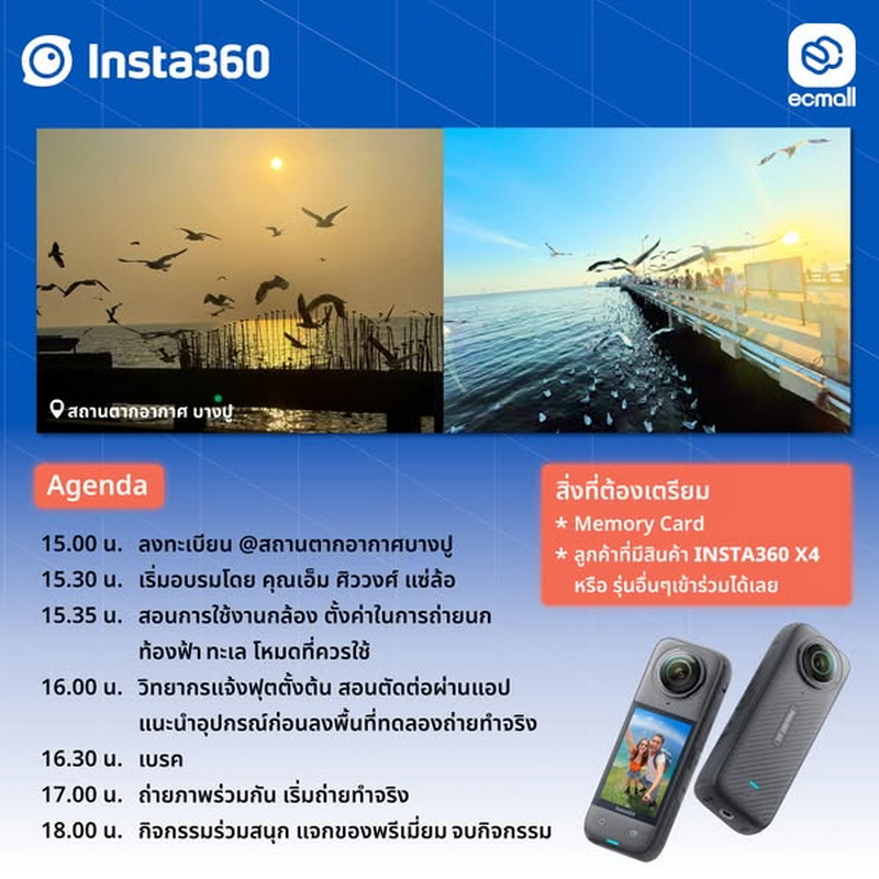 EC Mall ขอขอบคุณทุกท่านที่มาร่วมกิจกรรม BIRD IN MOTION WORKSHOP by Insta360 ณ สถานตากอากาศบางปู