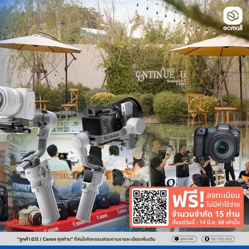 สุดท้าย ตัดต่อ แขร์ผลงาน รับของที่ระลึกค่ะ EC Mall ดีใจที่ได้เห็นทุกท่านสนุกและเต็มที่ไปกับการอัปสกิลถ่ายวิดีโอ Cinematic ด้วย DJI RS 4 Mini และกล้อง Canon เราหวังว่าทุกท่านจะได้รับเทคนิคดีๆ ในการถ่ายวิดีโอแบบมืออาชีพ จากคุณเจ Here's Jae จะช่วยเติมแรงบันดาลใจในการสร้างสรรค์งานวิดีโอครั้งต่อไป!