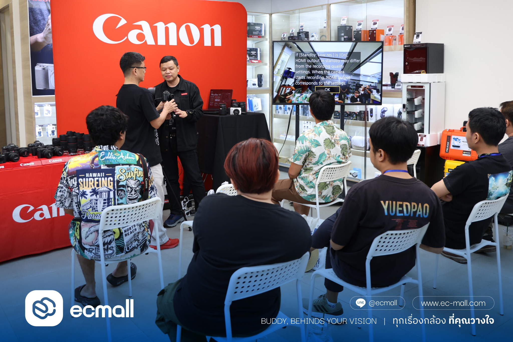 ทีมวิทยากรจาก Canon Technical Specialist ที่มาแชร์ความรู้แน่น ๆ ลูกค้าตั้งใจเรียนและ ได้สัมผัส Touch & Try กล้องและเลนส์ CANON และเทคโนโลยีเลนส์ VCM แบบใกล้ชิด เลยค่ะ อบอุ่นมากมาก