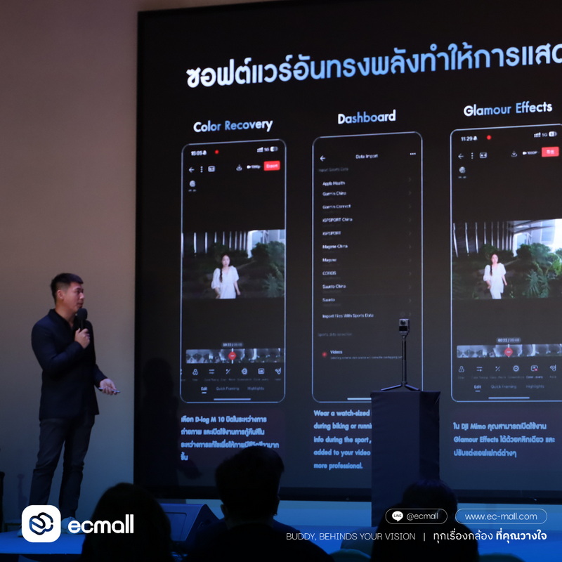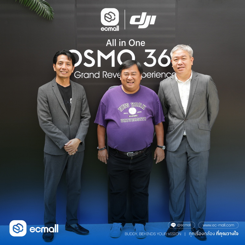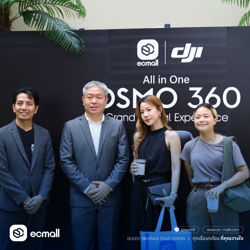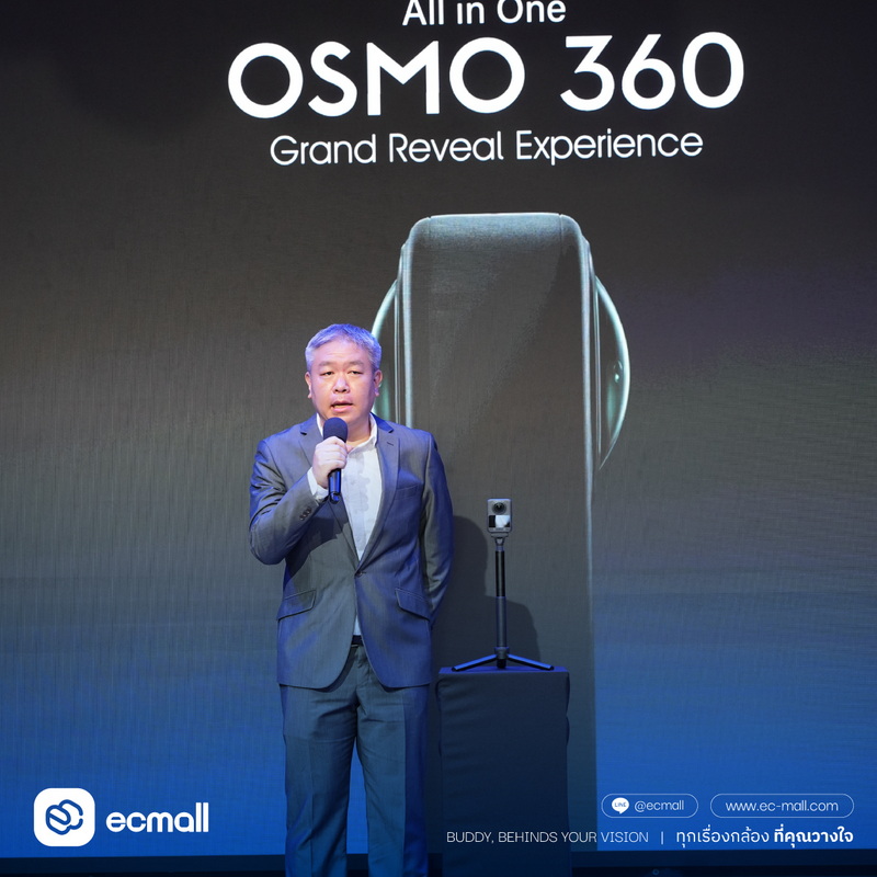 Mr.Jingyao Wen ผู้แทนจากสำนักงานใหญ่ DJI Global ที่ให้เกียรติขึ้นกล่าวเปิดงานและแบ่งปันวิสัยทัศน์และแนวคิดเทคโนโลยี Osmo 360 ที่จะยกระดับวงการคอนเทนต์ทั่วโลก และ การกล่าวต้อนรับอย่างอบอุ่นจาก คุณณรงค์ชัย เหลืองนฤมิตชัย Director บริษัท อีซีมอลล์ จำกัด ที่ได้กล่าวถึงวิสัยทัศน์ของ ECMALLในฐานะตัวแทนจำหน่ายอย่างเป็นทางการของ DJI ในประเทศไทย พร้อมเน้นย้ำถึงความตั้งใจในการนำเสนอนวัตกรรมล้ำสมัยอย่าง DJI Osmo 360 ที่จะยกระดับการสร้างสรรค์คอนเทนต์ของผู้ใช้งานทุกคน และ Mr.Simon Huang Vice president รองประธานบริษัท เอซูรีอินโนเวชั่น (ประเทศไทย) ผู้บริหารจาก DJI Thailand ให้เกียรติมาร่วมงานเปิดตัวในครั้งนี้ด้วย