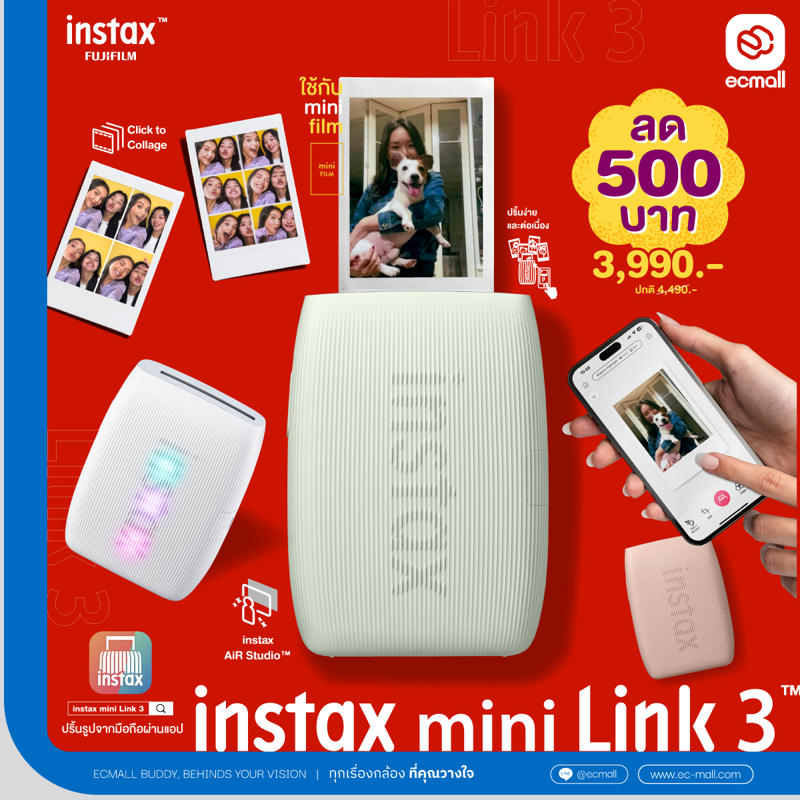 instax mini Link 3 ปกติ 4,490 ลดเหลือ 3,990
