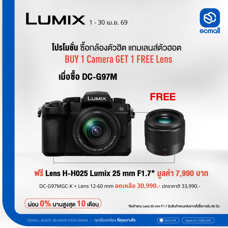Panasonic | LUMIX BUY 1 FREE 1 MEGA SALE อัปเกรดวันนี้ รับฟรีเลนส์ / ฟรีแบตเตอรี่ พร้อมส่วนลดสูงสุด 20,000.- | 1-30 Apr 69