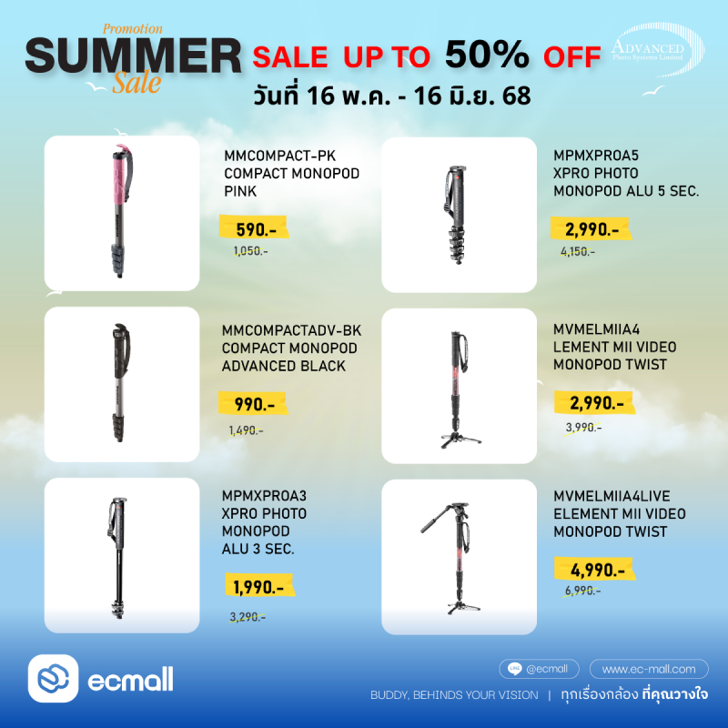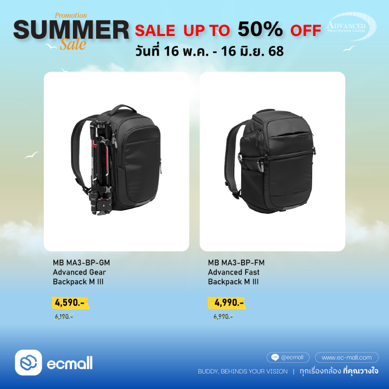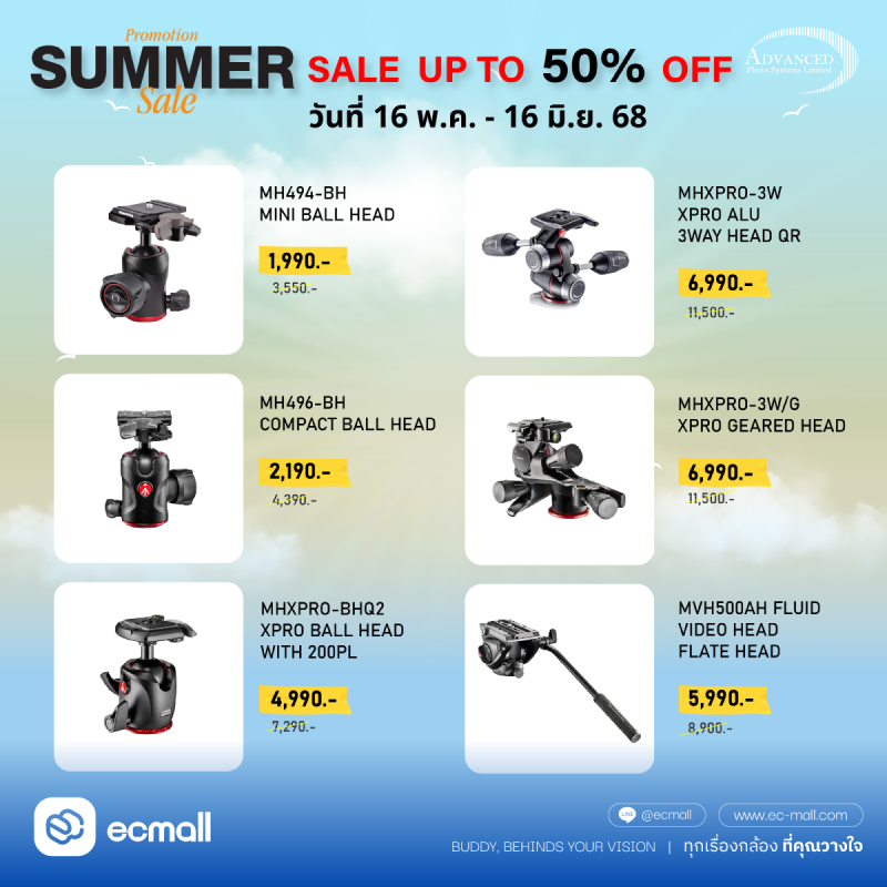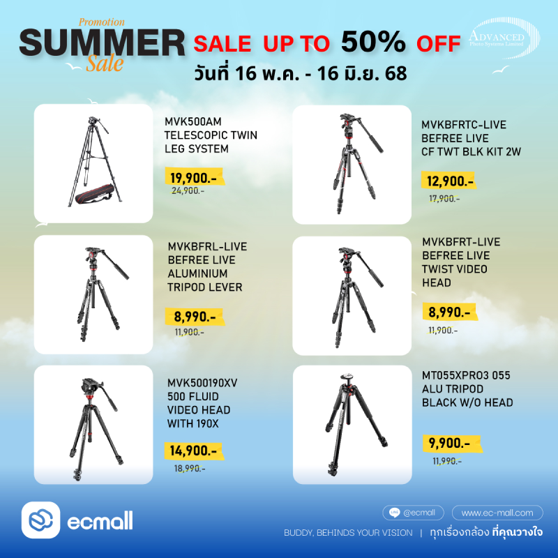Manfrotto | พร้อมลุยทุกทริป! Manfrotto SUMMER SALE ขาตั้งท็อป กระเป๋าเทพ ราคาสุดร้อนแรง ลด 50% | 16 May -16 June 68