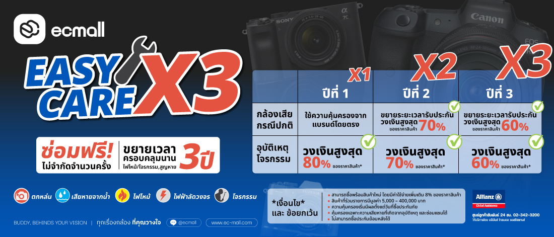 “ประกันกล้อง Easy Care X3 คุ้มครองยาว 3 ปี อุ่นใจทุกช็อต”
