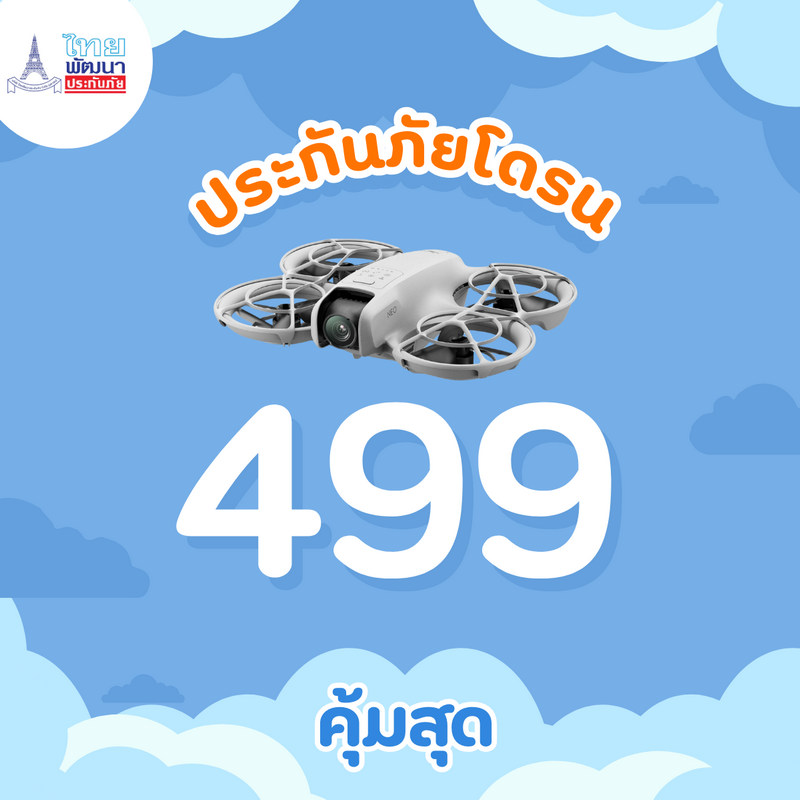 เพื่อความมั่นใจในการใช้งานโดรนของคุณ ทางเราได้จัดเตรียมบริการ ประกันภัยโดรน จากบริษัท ไทยพัฒนาประกันภัย จำกัด ซึ่งเป็นบริษัทที่ได้รับการรับรองและเชื่อถือได้ /การทำประกันภัยโดรนไม่เพียงแต่ช่วยให้คุณบินได้อย่างถูกกฎหมาย แต่ยังเพิ่มความอุ่นใจ ปลอดภัย และคุ้มครองความเสียหายที่อาจเกิดขึ้น