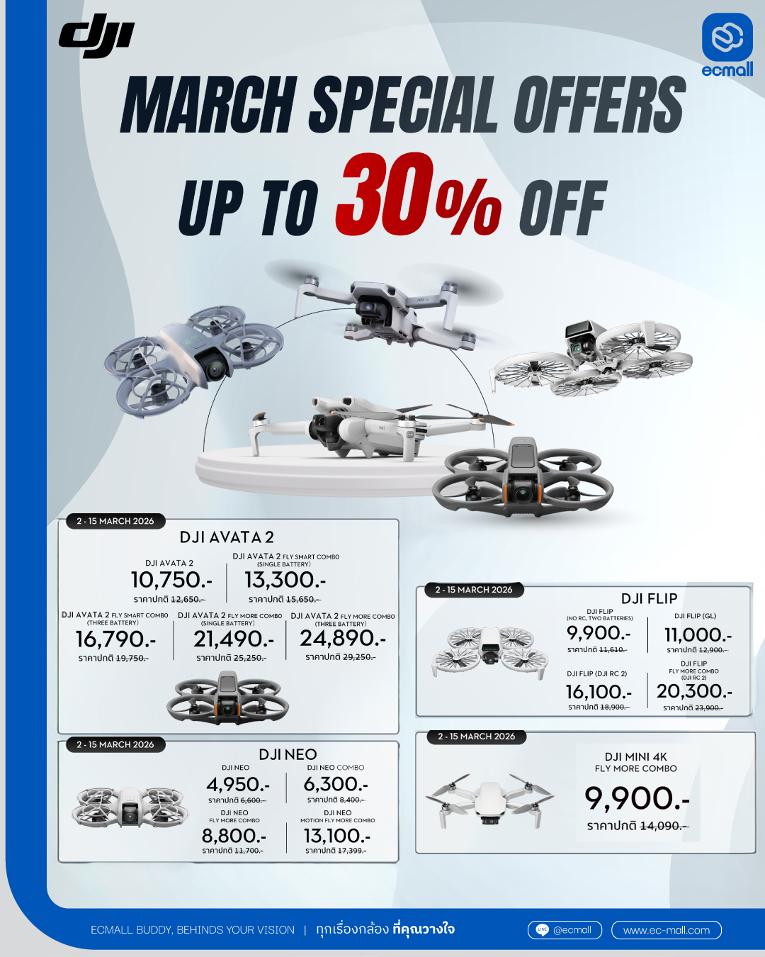 DJI Neo Motion Fly More Combo ปกติ 17,399.- เหลือ 13,100.- - DJI Mini 4K Fly More Combo ปกติ 14,090.- เหลือ 9,900.-