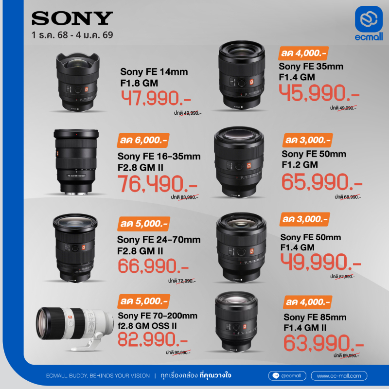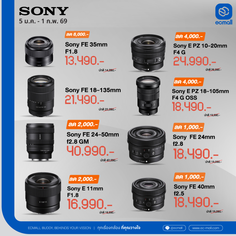 | Sony FE 50mm F1.8 ปกติ 11,990 เหลือ 9,990 |