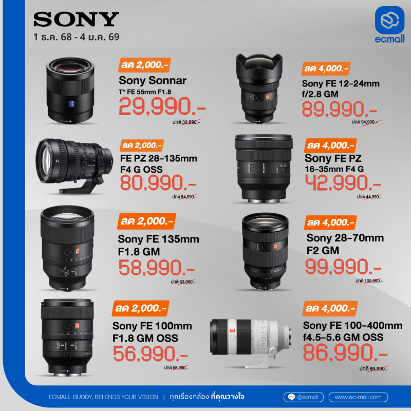 | Sony FE PZ 28-135 mm F4 G OSS ปกติ 84,990 เหลือ 80,990 |
