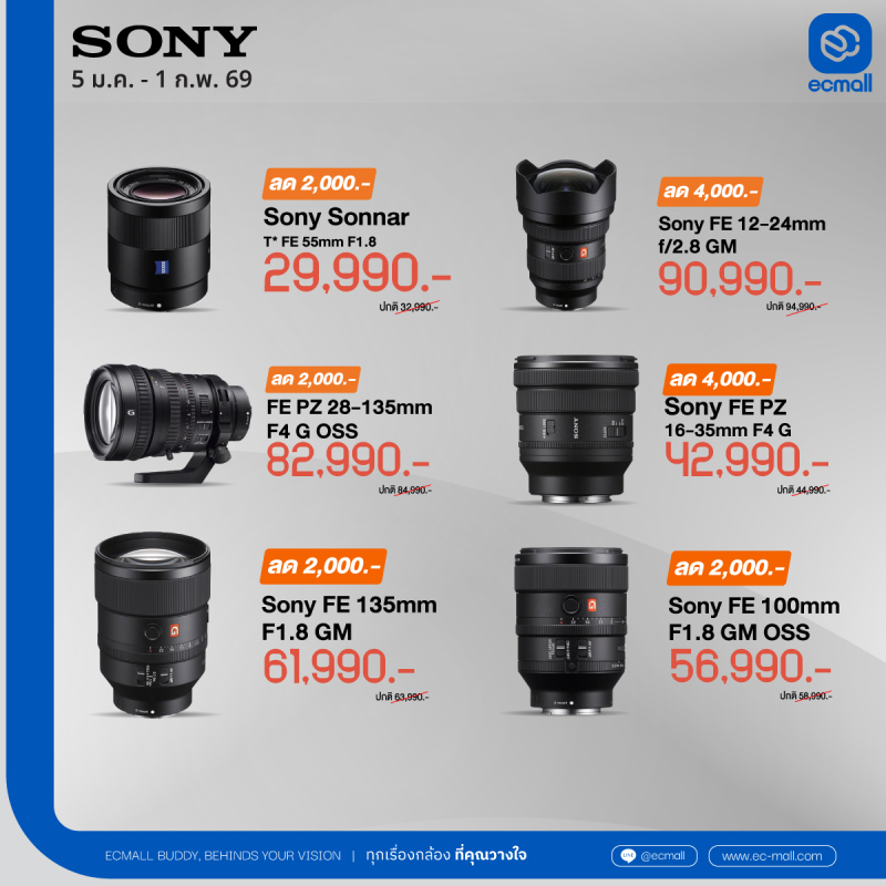 SONY SUPER DEAL – กล้องและเลนส์ ลดคลั่ง! สูงสุด 20,000 บาท วันที่ 5 มกราคม - 1 กุมภาพันธ์ 2569 นี้เท่านั้น!