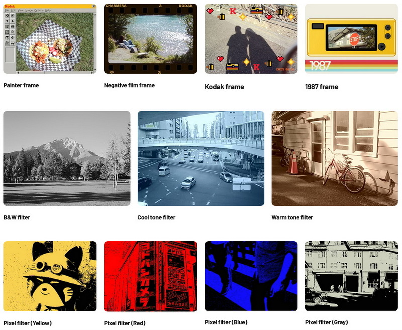 ไม่ใช่เพียงรูปลักษณ์ภายนอกที่เรโทร แต่ CHARMERA ยังมีฟิลเตอร์และเฟรมสไตล์ Kodak ติดตั้งมาในตัว ให้ทุกภาพถ่ายได้กลิ่นอายฟิล์มแท้ๆ โดยไม่ต้องแต่งเพิ่ม เช่น