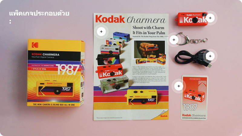 KODAK เคยสร้างปรากฏการณ์ในปี 1987 ด้วยกล้องใช้แล้วทิ้งรุ่นแรก KODAK Fling ที่ทำให้การถ่ายภาพแบบ Point-and-Shoot กลายเป็นเรื่องง่ายสำหรับทุกคน วันนี้ KODAK นำเสน่ห์แบบเรโทรกลับมาอีกครั้งในรูปแบบดิจิทัลกับ KODAK CHARMERA กล้องจิ๋วที่เล็กพอจะห้อยพวงกุญแจ แต่เก็บความสุขและความทรงจำได้อย่างเต็มเปี่ยม