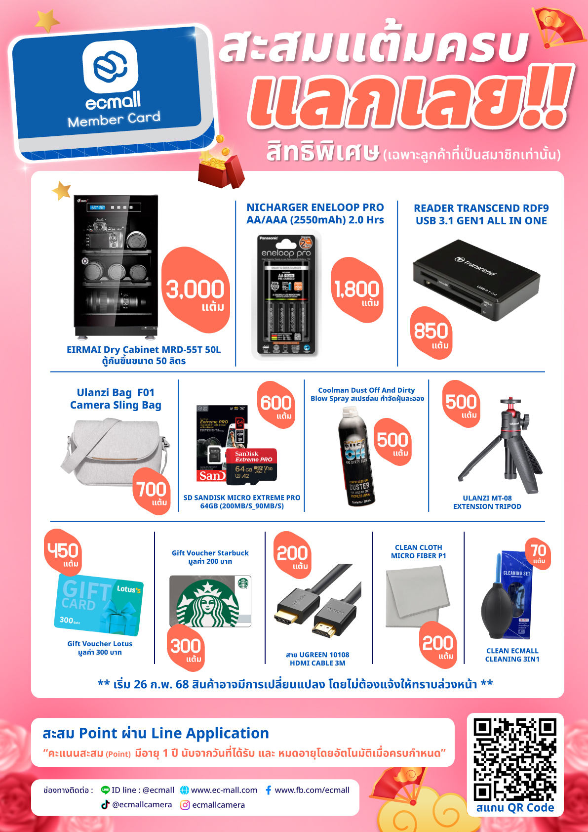 สำหรับลูกค้า EC MALL MEMBER สามารถใช้คะแนนแลกรับของแถม และยังได้สิทธิ์เข้าร่วม Workshop ฟรี