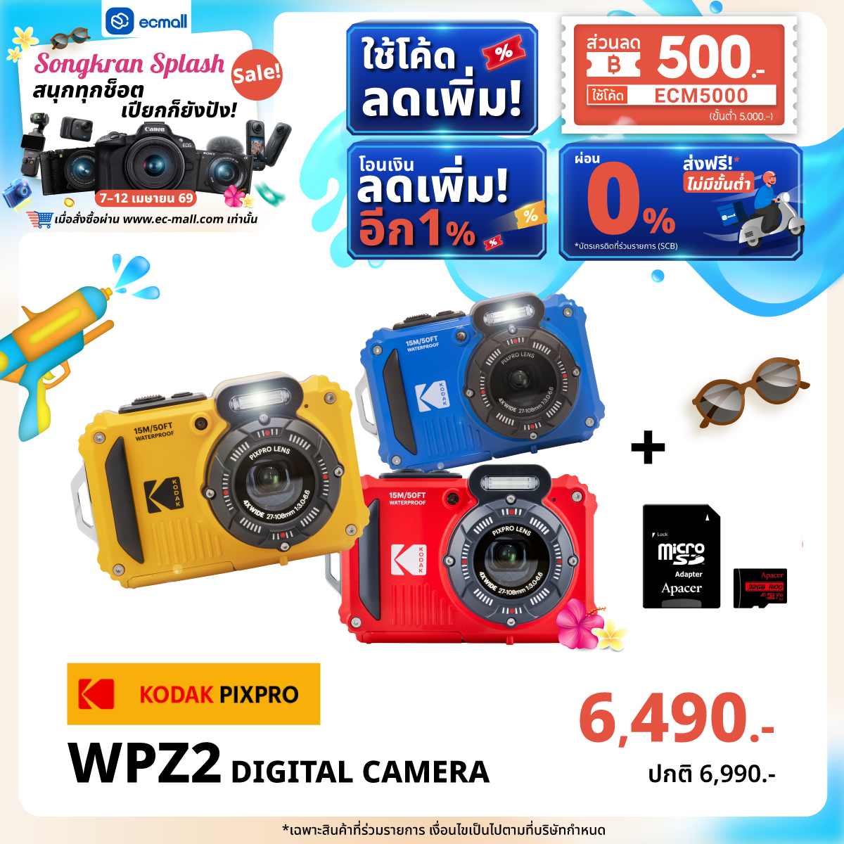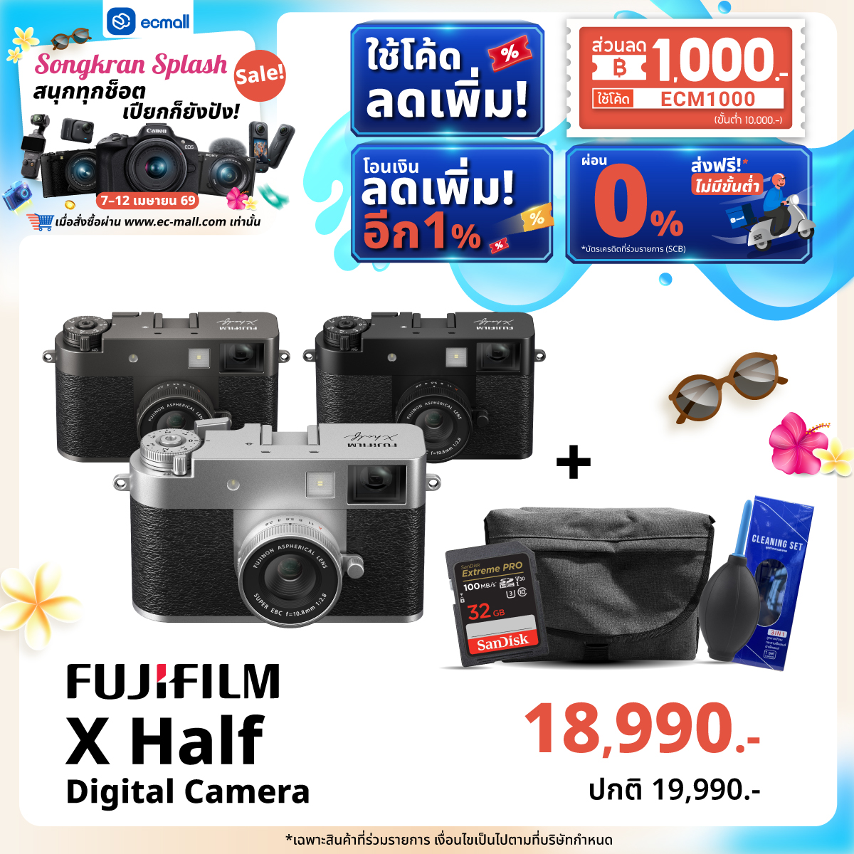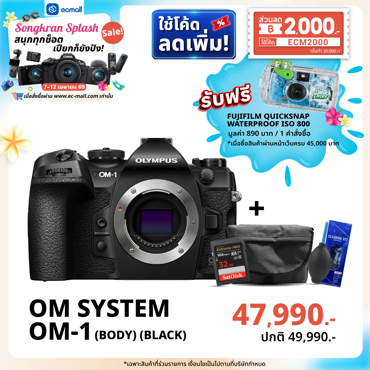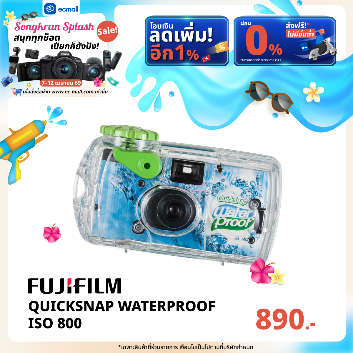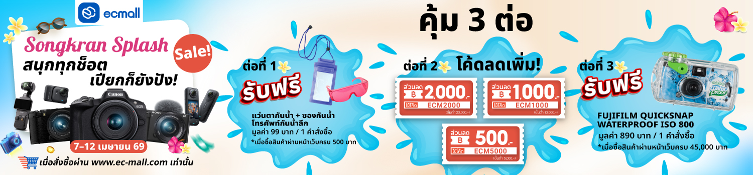 EC MALL Songkran Splash Sale สนุกทุกช็อต เปียกก็ยังปัง|7–12 เมษายน 69 ลดจัดเต็มสูงสุด 2,000.- ซื้อครบ 45,000 บาท รับฟรี!!! FUJIFILM QUICKSNAP WATERPROOF ISO 800 มูลค่า 890 บาท