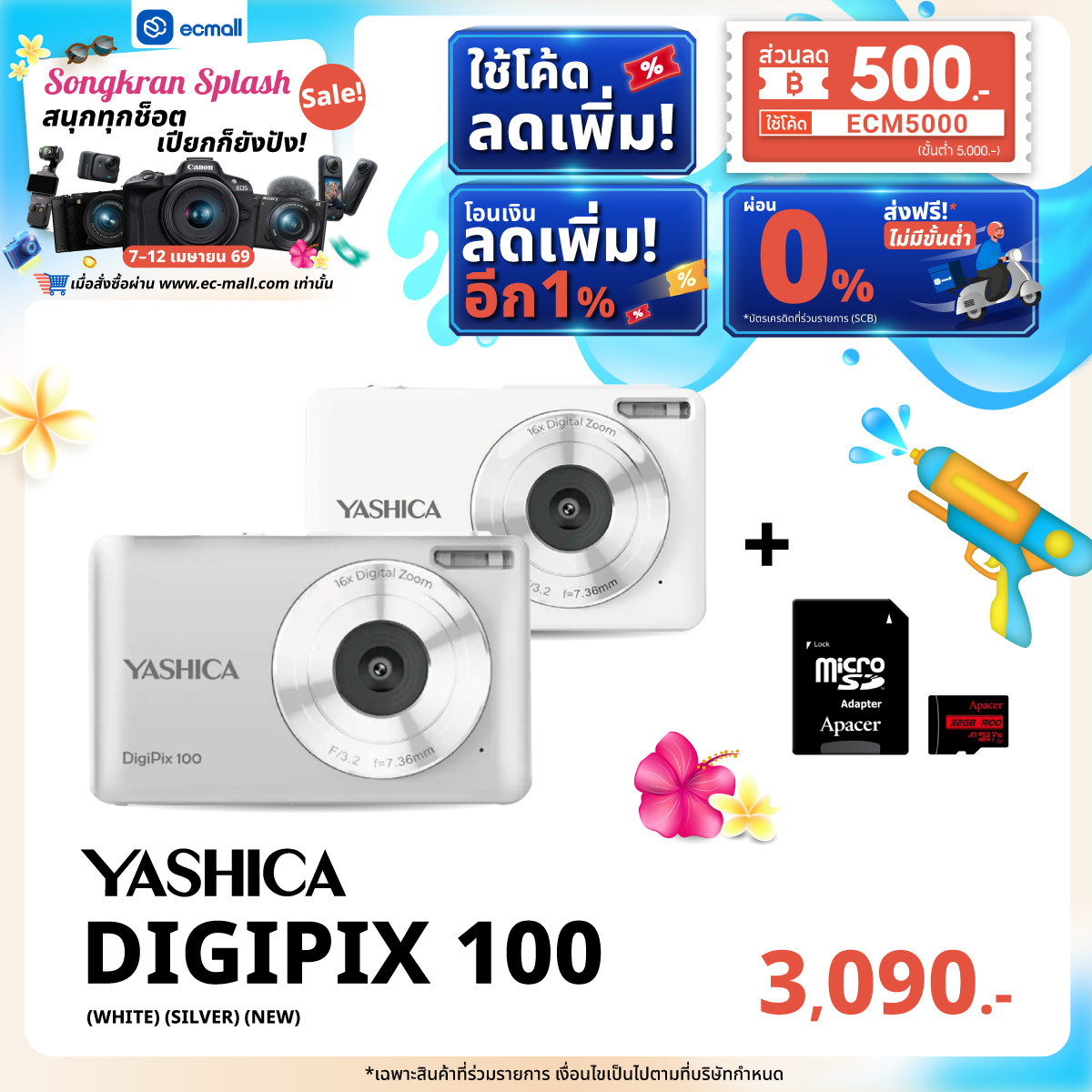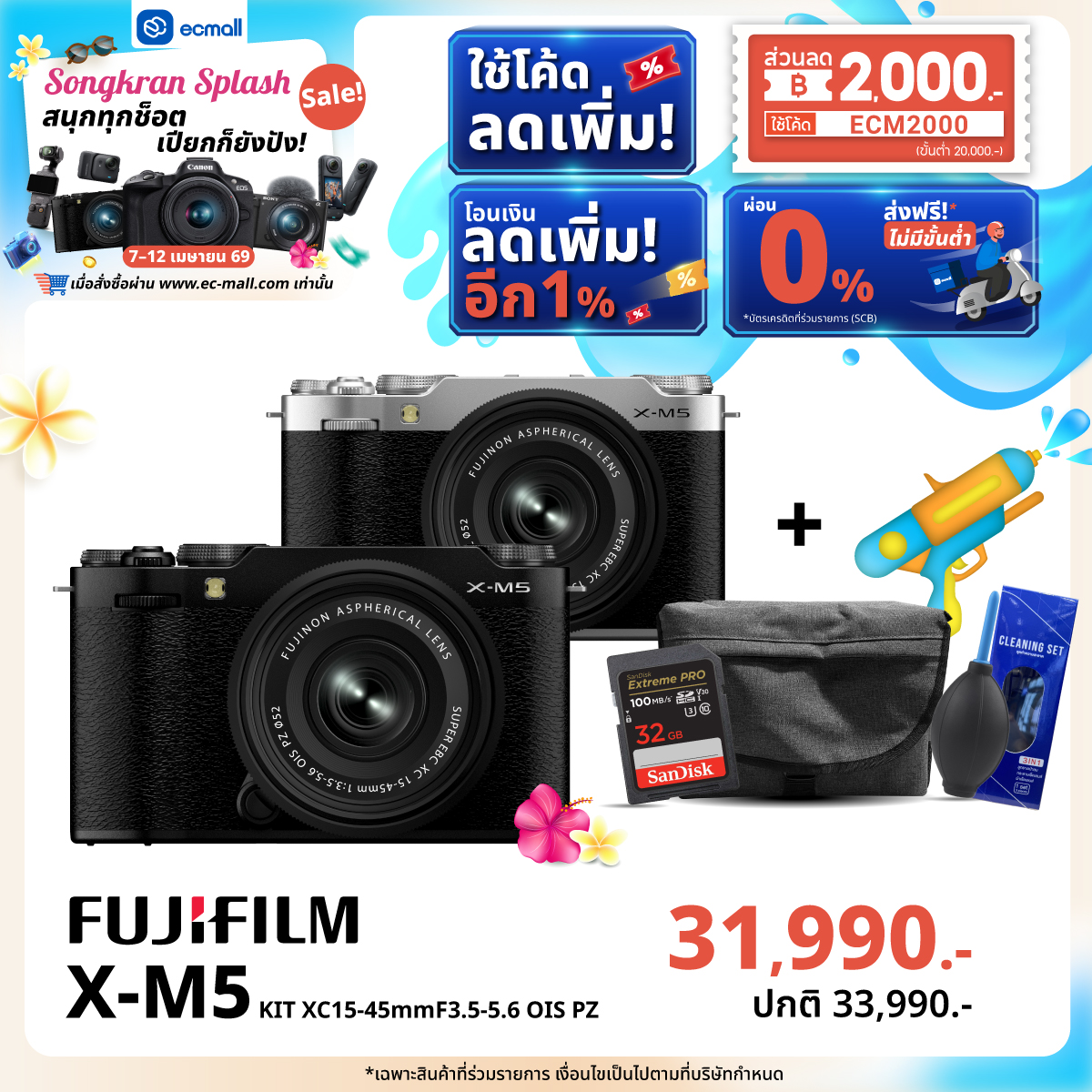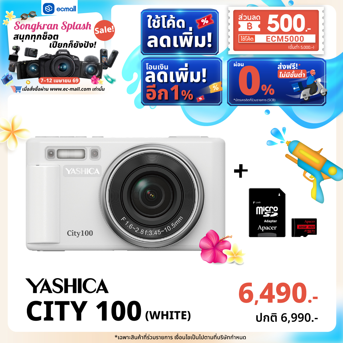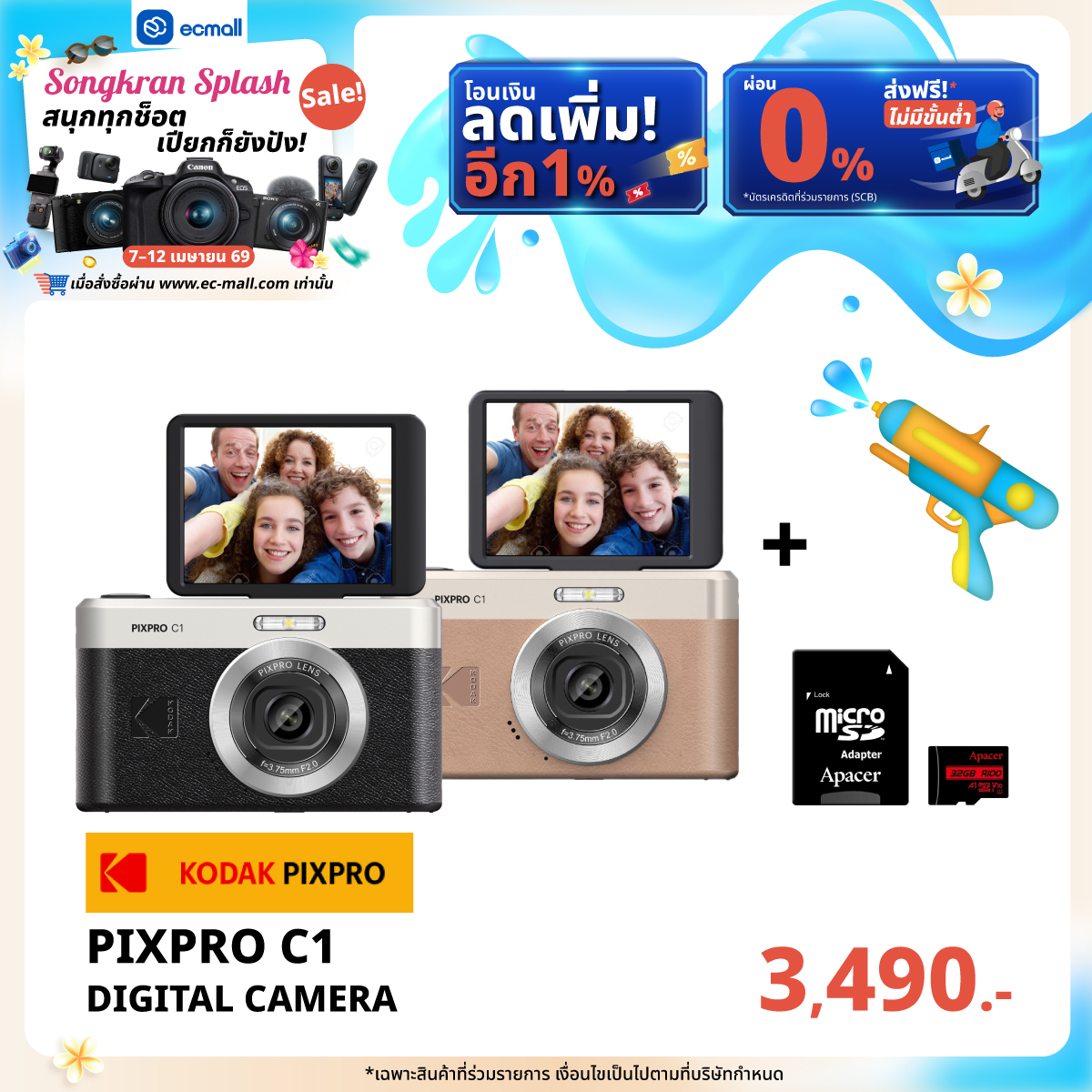 EC MALL Songkran Splash Sale สนุกทุกช็อต เปียกก็ยังปัง|7–12 เมษายน 69 ลดจัดเต็มสูงสุด 2,000.- ซื้อครบ 45,000 บาท รับฟรี!!! FUJIFILM QUICKSNAP WATERPROOF ISO 800 มูลค่า 890 บาท