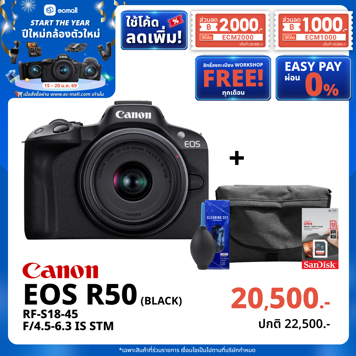 CANON EOS R50 KIT 18-45MM + SD Card 32 GB + กระเป๋า + ชุดทำความสะอาด