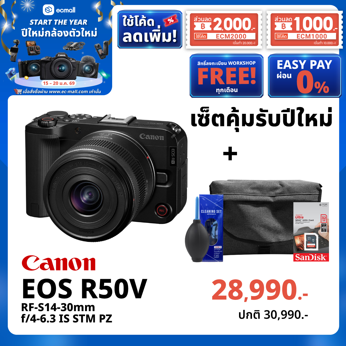 CANON EOS R50V KIT RF-S 14-30MM F4-6.3 IS STM PZ (BLACK) + SD Card 32 GB + กระเป๋า + ชุดทำความสะอาด