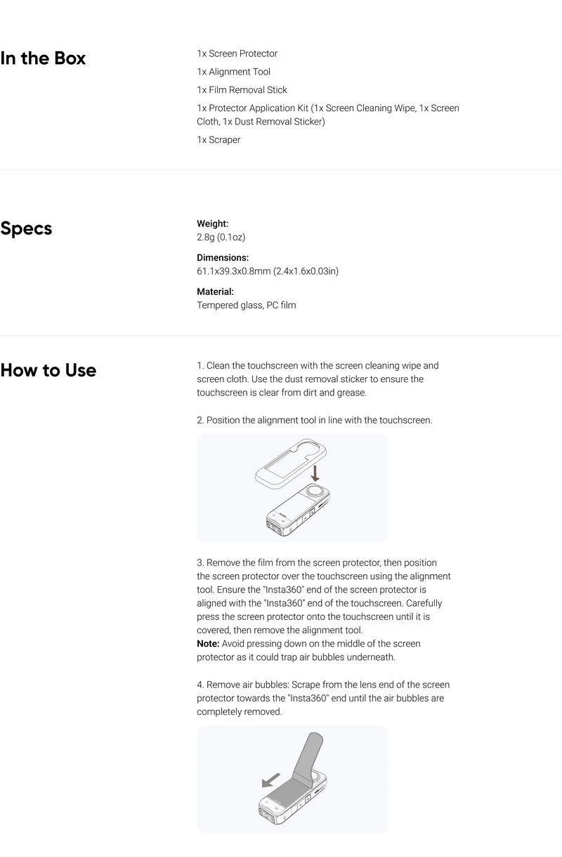 จุดเด่น/เสปคย่อ Insta360 X5 Screen Protector