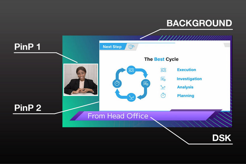 คุณสามารถควบคุมเลเยอร์เหล่านี้แยกกันบน Program, Sub-Program และ Aux Output ได้ ทำให้เหมาะกับงานที่ต้องการภาพซ้อนซับ เช่น งานสัมมนา งานถ่ายทอดกีฬา หรือไลฟ์ที่มีหลายมุมกล้อง