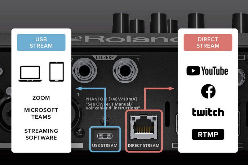 พอร์ต LAN (RJ45) รองรับการ Direct Streaming ไปยัง YouTube, Facebook Live, Twitch หรือ RTMP Server ได้โดยตรง ไม่ต้องใช้คอมพิวเตอร์