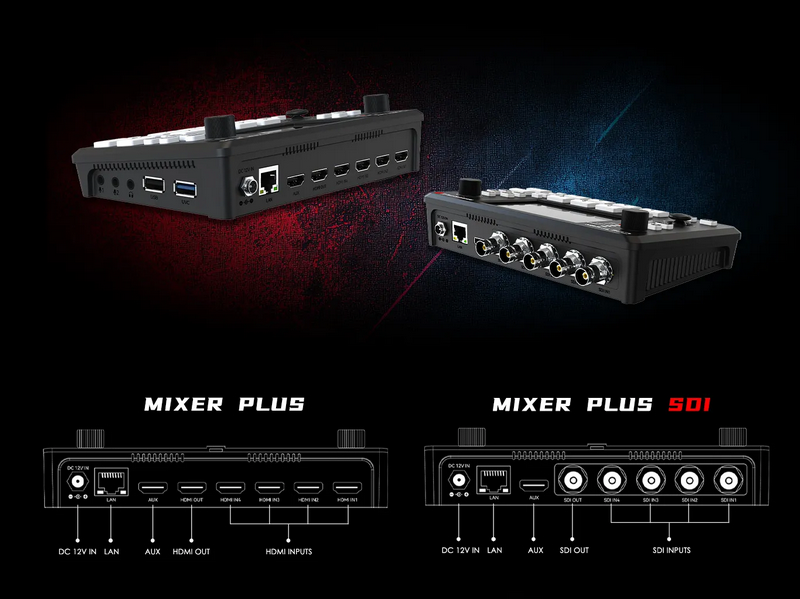 Mixer Plus รุ่น HDMI รองรับอินพุต HDMI พร้อมกันสูงสุด 4 ช่อง ช่วยให้เชื่อมต่อกล้องหลายตัว คอมพิวเตอร์ หรือแหล่งสัญญาณอื่นๆ ได้ในระบบเดียว พร้อมระบบสลับภาพที่ลื่นไหลและเครื่องมือโปรดักชันครบถ้วน โดยไม่จำเป็นต้องพึ่งซอฟต์แวร์ภายนอกมากเกินไป