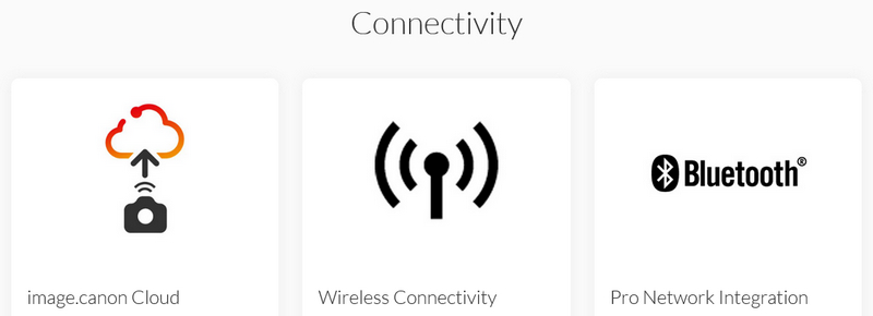 USB-C 3.2 Gen 2 ชาร์จในตัว/โอนข้อมูล และใช้เป็นเว็บแคม FHD 30p (UVC/UAC) ได้ มี 3.5 มม. ไมค์-อิน/หูฟัง-เอาต์, HDMI สำหรับเรคคอร์เดอร์ภายนอก, Wi-Fi 5 / BT 5.0 ควบคุม/โอนไร้สายผ่าน Canon Camera Connect, FTP/FTPS สำหรับมืออาชีพ (รวม Canon Content Transfer Professional ใส่เมทาดาทา/ฟิลเตอร์/จัดไฟล์) และบันทึก/เรียกใช้โปรไฟล์เครือข่าย (ยกมาจาก R5 Mark II)
