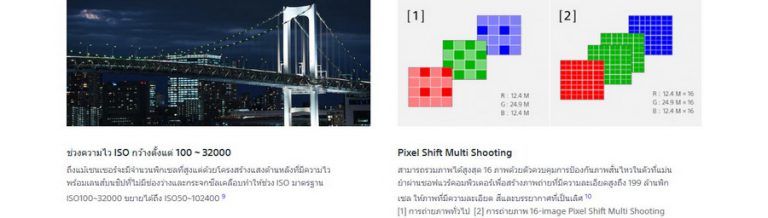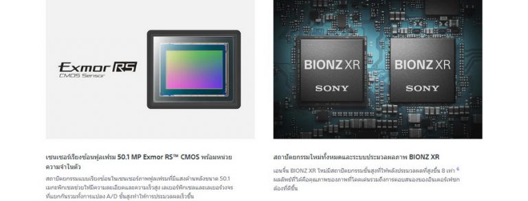 - เซนเซอร์ Exmor RS BSI CMOS ฟูลเฟรม 50MP