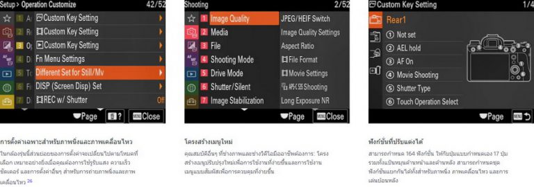 | ไฟล์ภาพ (File Types) | JPEG, RAW |
