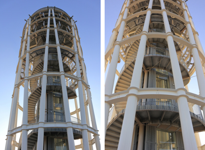 ผมถ่ายภาพที่ 15 มม. ด้วยการถ่ายภาพมุมต่ำใกล้กับพื้นดินมากๆ ผมพยายามเข้าไปใกล้หอคอยให้มากที่สุดจนเกิดเป็นมุมมองเปอร์สเปคทีฟเกินจริงซึ่งเป็นเอกลักษณ์ของคุณสมบัติมุมกว้าง และผมยังสามารถถ่ายทอดอารมณ์ภาพของหอคอยที่สูงเสียดฟ้าได้อีกด้วย