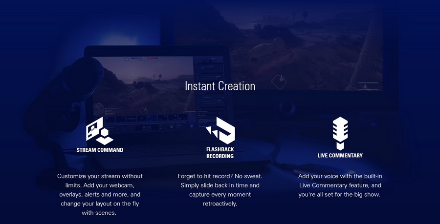 - Instant Gameview ให้คุณดูตัวอย่างแบบทันทีรวมถึงเว็บแคมของคุณและคำวิจารณ์สด