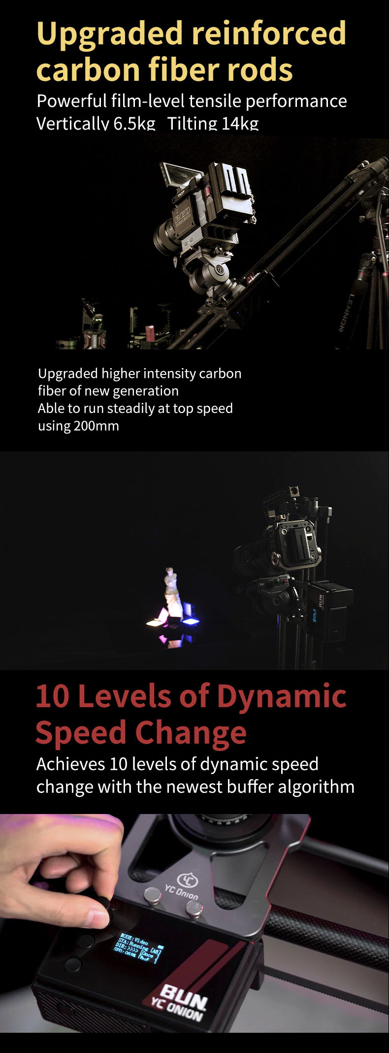จุดเด่น/เสปคย่อ YC Onion Hot Dog Motorized Slider 3.0 prlx & Pan Slider with App Dolly Slider