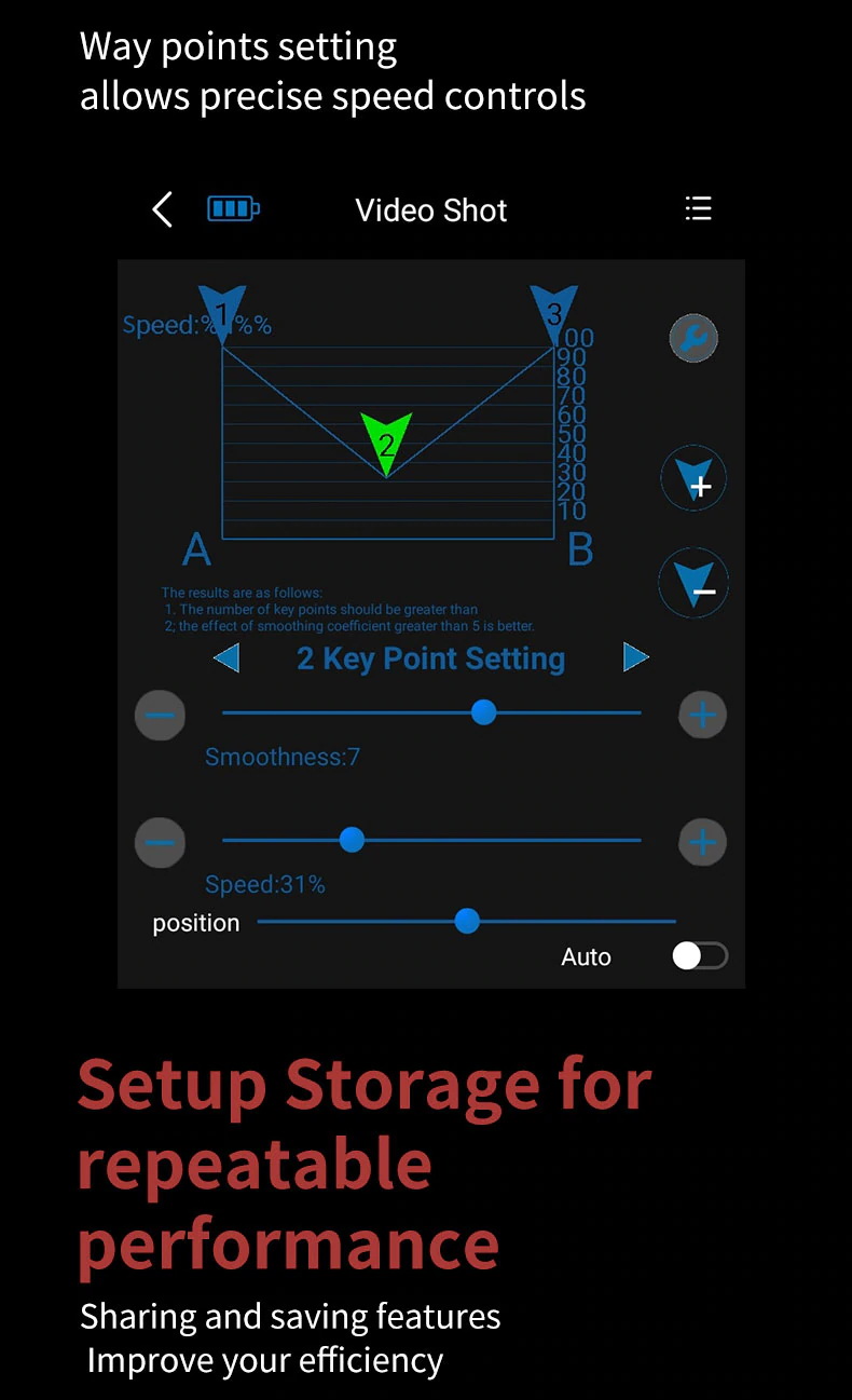 - ปรับความเร็วได้ถึง 10 ระดับแบบไดนามิก ด้วยอัลกอริธึมบัฟเฟอร์ล่าสุด เพื่อให้การเคลื่อนไหวมีความนุ่มนวลและเป็นธรรมชาติ