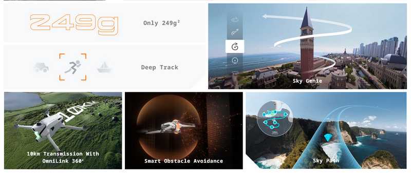 ฟีเจอร์ Sky Genie ยังช่วยให้สามารถสั่งท่าบิน Cinematic แบบสำเร็จรูปได้ เช่น Arc Shot, Spiral Ascent, Oval Orbit ฯลฯ แค่เลือกท่าจากแอปแล้วโดรนจะบินเก็บมุมอย่างสมูทระดับมือโปร โดยไม่ต้องควบคุมทิศและความเร็วเองละเอียดทุกจังหวะ