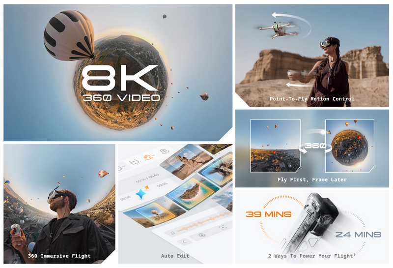 โดรน 360 องศาความละเอียดสูงสุด 8K เก็บภาพรอบตัวในเที่ยวบินเดียว