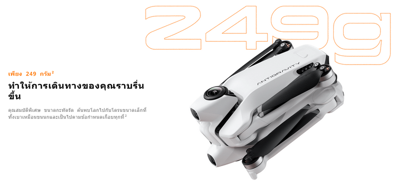 น้ำหนักตัวโดรนราว 249 กรัม พกพาสะดวก ใกล้เคียงเกณฑ์โดรนน้ำหนักเบาในหลายประเทศ