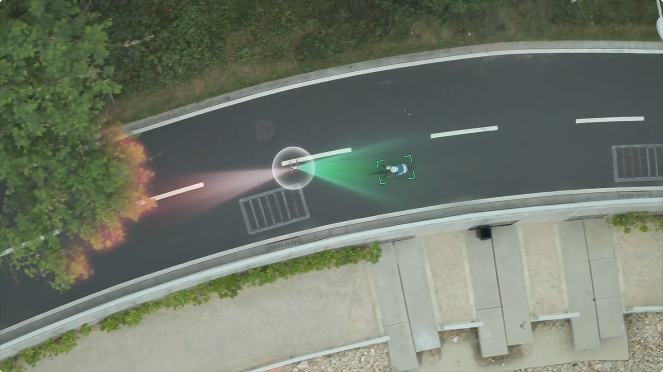 ระบบ Navigation Assist ช่วยให้ทิศทางด้านหน้าถูกควบคุมอยู่เสมอ แม้ผู้ใช้จะหันหัวมองซ้ายขวาผ่านแว่น 360 แต่โดรนก็ยังรักษาเส้นทางหลักให้เข้าใจง่าย ไม่หลงทิศ