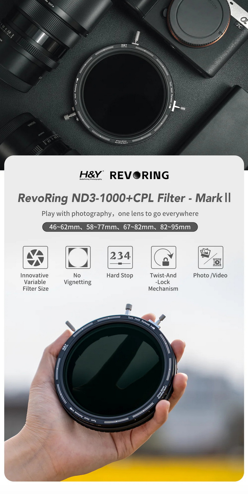 จุดเด่น/เสปคย่อ H&Y Revoring Mark II Variable Adapter Filter VND+CPL