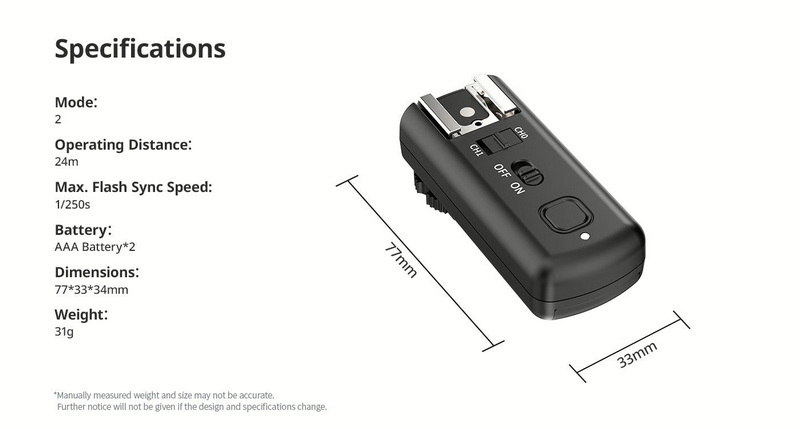 สเปค Ulanzi TT01 Wireless Flash Trigger (Specification)