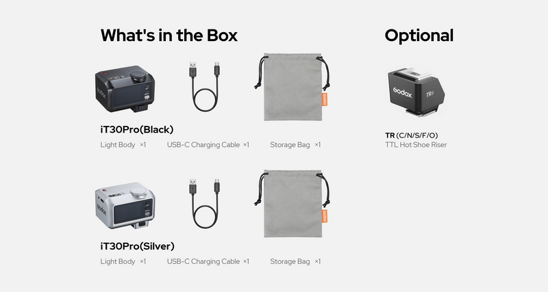ด้วยขนาดที่เล็กกว่าซีรีส์ Speedlight ทั่วไปหลายเท่า และน้ำหนักเพียง 120 กรัม iT30Pro สามารถใส่กระเป๋ากล้องหรือกระเป๋าสะพายได้สบาย เหมาะสำหรับการถ่ายงานนอกสถานที่ การเดินทาง หรือการถ่ายภาพแบบคล่องตัวที่ไม่ต้องการอุปกรณ์ชิ้นใหญ่